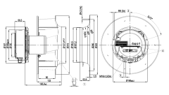 EBMPAPST R3G280-AU06-B1 TEKNİK AÇIKLAMA Ağırlık: 6.8kg Boyut: 280mm Rotor Yüzeyi: Siyah Kaplama Elektronik Malzemesi: Alüminyum Döküm Çark Malzemesi: Alüminyum Levha Bıçak Sayısı: 7 Dönme Yönü: Saat Tersi Yönüne Rotor 'a Doğru Yalıtım Sınıfı: ''B'' Nem Sınıfı: F3-1 Koruma Türü: IP54 Maks. izin verilen ortam sıcaklığı. motor için (nakliye / depolama): + 80 °C Min. izin verilen ortam sıcaklığı. motor için (nakliye / depolama): – 40 °C Operasyon Modu: S1 Motor Rulman: Bilye Teknik Özellikler: – Çıkış 10 VDC, maks. 10 mA – Çıkış 20 VDC, maks. 50 mA – Slave 0-10 V için çıkış – Sensör 0-10 V veya 4-20 mA için giriş – Harici 24 V giriş (parametre ayarı) – Alarm rölesi – Entegre PID kontrol cihazı – Motor akım sınırlaması – PFC, pasif – RS- 485 MODBUS-RTU – Yumuşak çalıştırma – Kontrol girişi 0-10 VDC / PWM – SELV potansiyeli beslemeden güvenli şekilde ayrılmış kontrol arayüzü – Elektronik / motor için termal aşırı yük koruması – Hat düşük / faz arıza tespiti Motor Koruması: Termal Aşırı Yük Koruması (TOP) Standartlara Uygunluk: EN 61800-5-1; CE Onay: CCC; EAC BAĞLANTI ŞEMASI